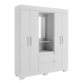 Guarda Roupa Casal 4 Portas e 2 Gavetas Capelinha com Espelho Alyssa Espresso Móveis Branco