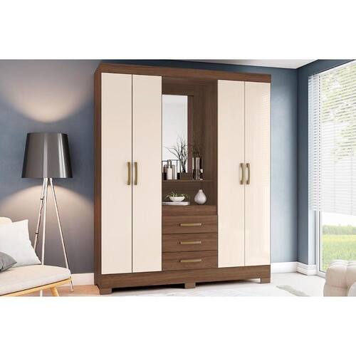 Guarda Roupa Casal 4 Portas E 3 Gavetas C/ Espelho Briz B24 Castanho/off White - Henn