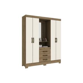 Guarda Roupa Solteiro 4 Portas e 3 Gavetas c/ Espelho Briz B24 Castanho/Off White - Henn Marca: HENN