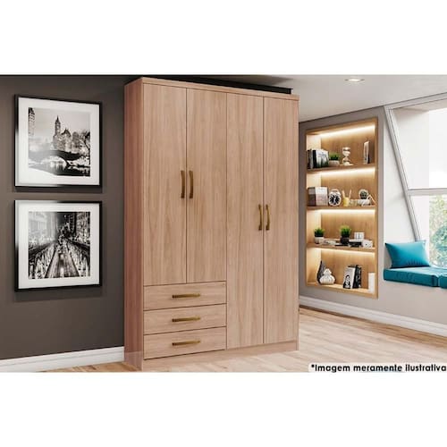 Tipo de Cabideiro - Aéreo Material dos Cabideiros - Cabideira Metálico Tipo de Dobradiças - Dobradiças Metálicas Tipo de Corrediça - c/ Corrediças Metálicas Quantidade de Gavetas - 3