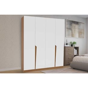 Guarda Roupa Casal 4 Portas e 4 Gavetas Porto Freijo/Branco - Politorno
