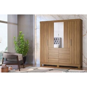 Guarda Roupa Casal 4 Portas e 6 Gavetas c/ Espelho Cádis Amêndola/Off White - Demóbile