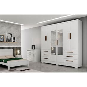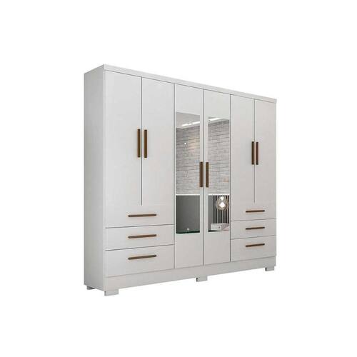 Guarda Roupa Solteiro 6 Portas e 6 Gavetas c/Espelho e Pés Encant Branco - Novo Horizonte