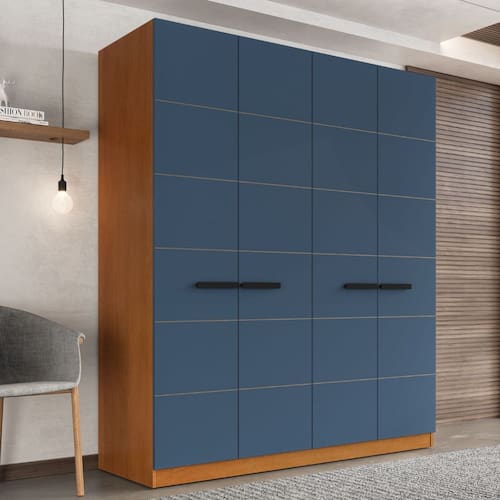 Guarda Roupa Casal 4 Portas Lisboa Politorno - Azul | Marrom