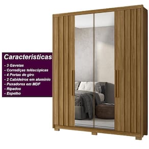Guarda Roupa Casal Espelho 4 Portas 3 Gavetas California Moval