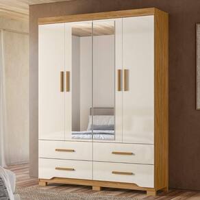Guarda Roupa Casal 4P Espelho 157 cm Miami Moval - Off White