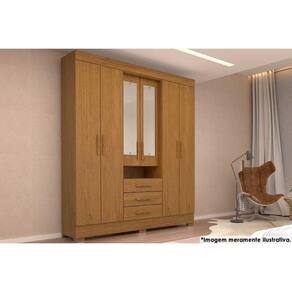 Guarda Roupa Solteiro 6 Portas (2 c/ Espelho) e 3 Gavetas Débora Cinamomo - ACP