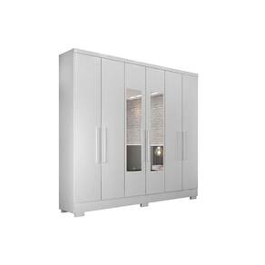 Guarda Roupa Solteiro 6 Portas (2 c/ Espelho) e 4 Gavetas c/ Pés Milly/Veneza Neve - Novo Horizonte