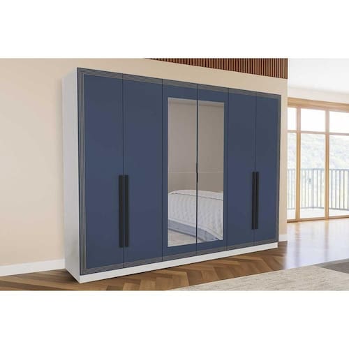 Material do Calceiro - Calceiro Metálico Material dos Cabideiros - Cabideira Metálico Tipo de Porta do Guarda-Roupa - Portas de Bater Diferenciais das Portas - Porta c/ Espelho Quantidade de Portas - 6 Portas de Abrir Quantidade de Portas com Espelho - 2 Portas com Espelho Tipo de Espelho - Espelho Externo Quantidade de Espelhos - 2 Espelhos Tipo de Corrediça - c/ Corrediças Telescópicas Quantidade de Gavetas - 4 Gavetas Quantidade de Prateleiras - 3 Quantidade de Nichos - 4 Nichos