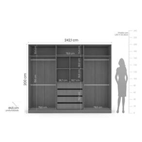 Dimensões(Cm): Comprimento(Profundidade): 46cm x Largura: 242cm x Altura: 200,4cm