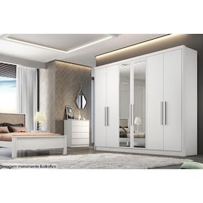 Material dos Cabideiros - Cabideira Metálico Tipo de Dobradiças - Dobradiça de Pressão Quantidade de Portas - 6 Portas de Abrir Tipo de Corrediça - c/ Corrediças Telescópicas Quantidade de Prateleiras - 8