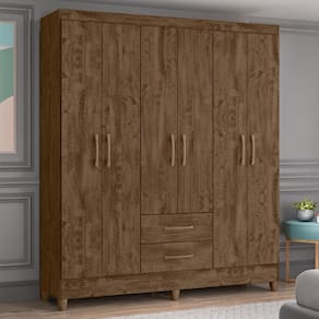 Guarda Roupa Casal 6 Portas 2 Gavetas 153cm Paraná M07 Castanho Wood - Mpozenato