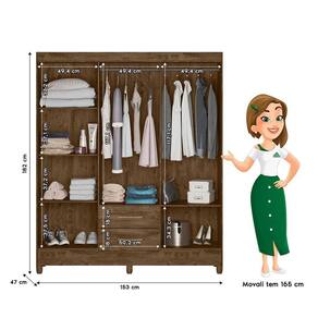 Guarda Roupa Casal 6 Portas 2 Gavetas 153x182cm Panamá Moval Cor:castanho