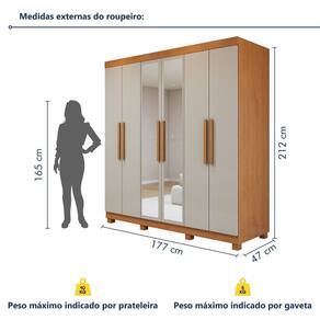 É fácil de limpar? Super. Um pano úmido já o mantém limpo. Acabamento da Prateleira: Pintura Escala de Brilho da Prateleira: Semi-Fosco Possui Cabideiros: Sim Acabamento da Gaveta: Pintura Escala de Brilho da Gaveta: Semi-Fosco Possui Organizador de Gaveta: Não Acabamento da Porta: Pintura UV Escala de Brilho da Porta: Semi-Fosco Material do Puxador da Porta: MDF Acabamento dos Pés: Pintura Altura do Espelho: 90 cm Altura dos Pés: 7 cm Altura Máxima dos Pés: 7.0000 Ambiente Principal: Quarto codigo_ean: 7900288334275 Complexidade da Montagem: Alta: deve ser montado por um montador especializado Cor: Amêndoa Clean/Off White Cor da Porta: Off White Cor do Produto: Amêndoa Clean/Off White Cor do Puxador: Marrom Escala de Brilho: Semi-Fosco Espessura da Estrutura (mm): 15 mm Espessura das Portas (mm): 15 mm Espessura das Prateleiras (mm): 15 mm Espessura do Espelho: 3 mm Espessura do Fundo (mm): 12 mm Espessura do Fundo das Gavetas (mm): 2,7 mm Formato do Espelho: Retangular Gaveta com Chave: Não Itens Inclusos: 1 Guarda-Roupa, Manual de Montagem e Kit Ferragem Largura do Espelho: 23,5 cm Linha ou Coleção: Andara Soft Manual de Montagem e Instalação: https://product-hub-prd.madeiramadeira.com.br/194181749/documents/438ee50d-c083-4dca-bd9e-4eca0180ea573400764554117715096897005.pdf Marca: Móveis Lopas Material da Gaveta: MDP Material da Porta: MDP Material da Prateleira: MDP Material dos Pés: ABS Material Principal: MDP modular: Não Necessita Montagem: Sim Nicho com Cabideiro: Não Origem do Produto: Nacional Peso: 105 kg Peso Máximo por Gaveta: 5 kg Peso Máximo por Prateleira: 10 kg Porta Janelada: Não Possui Calceiros: 01 Possui Espaço para Vestidos Longos: Sim Possui Espelho: Sim Possui Espelho Interno: Não Possui iluminação: Não Possui Painel de TV: Não Possui Penteadeira: Não Possui Pés: 08 Possui Portas: Sim Possui Prateleiras: Sim Produto Montado: Sim Quantidade de Cabideiros: 02 Cabideiros Quantidade de Espelho: 04 Espelhos com Tamanhos Iguais Quantidade de Gavetas: 02 Gavetas Quantidade de Portas com Espelhos: 2 Portas com Espelho Quantidade de Prateleiras: 04 Prateleiras Recomendações de Uso, Manutenção e Limpeza: Limpar somente com pano macio e seco; Não colocar diretamente em incidência da luz solar; Não colocar em local úmido. Sapatas Niveladoras: Não Sistema de Montagem: Parafusos E Minifix. Tipo de Corrediça da Gaveta: Metálica Telescópica Tipo de Dobradiça/Corrediça da Porta: Metálica Tipo de Fixação do Espelho: Botão Francês Tipo de Gaveta: Interna Tipo de Guarda-Roupa: Casal Tipo de Puxador da Gaveta: Não Possui Tipo de Puxador da Porta: Externo