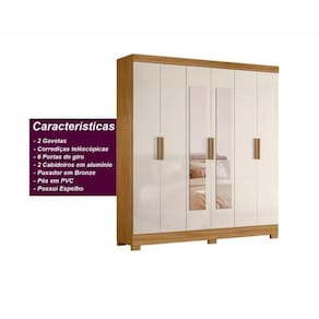 Guarda Roupa Casal 6 Portas 2 Gavetas com Espelho Valença Moval