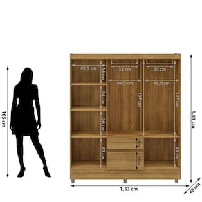 • Pintura: Cabideiro de Madeira Ajustável; Puxador Astra 128mm; Possui 4 Prateleiras; Acompanha Espelho;
