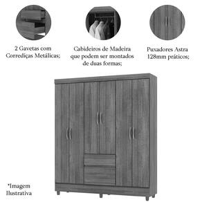 • Pintura: Cabideiro de Madeira Ajustável; Puxador Astra 128mm; Possui 4 Prateleiras;