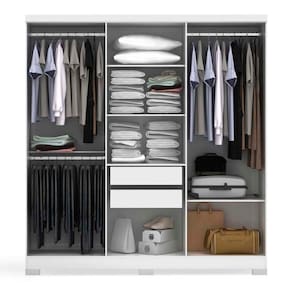 Roupeiros: ------------------------------------------- Quantidade de Cabideiros: 3 Cabideiros Possui Espelho: Sem Espelho Quantidade de Gavetas: 2 Gavetas Quantidade de Portas: 6 Portas Modelo: Casal Tipo de Porta: Porta de Bater