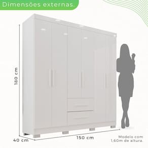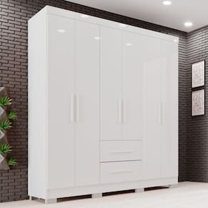 O Guarda-Roupa é o item mais importante do quarto para manter a organização. A peça de qualidade é aquela com o espaço suficiente para suas roupas, sapatos e acessórios. Além disso, é ideal que o móvel transmita sua personalidade, e também, combine com a decoração do ambiente. Organize e encontre com mais facilidade suas roupas preferidas com o auxílio deste atraente guarda roupa Estrela Premium. Confeccionado com materiais de qualidade e resistência, ele é a opção certa para deixar seu dormitório muito mais arrumado e confortável. Aproveite! Acabamento da Prateleira: Pintura Texturizada UV Escala de Brilho da Prateleira: Brilhante Possui Cabideiros: Sim Acabamento da Gaveta: Pintura Texturizada UV Escala de Brilho da Gaveta: Brilhante Possui Organizador de Gaveta: Não Acabamento da Porta: Pintura Texturizada UV Escala de Brilho da Porta: Brilhante Material do Puxador da Porta: MDF Altura dos Pés: 5 Altura Máxima dos Pés: 5.0000 Ambiente Principal: Quarto codigo_ean: 7899931146313 Complexidade da Montagem: Média: pode ser montado por mais de uma pessoa e/ou necessite de maior conhecimento para montagem Cor: Branco Cor do Produto: Branco Escala de Brilho: Brilhante Gaveta com Chave: Não Itens Inclusos: 1 Guarda Roupa, Manual de Montagem e Kit Ferragens Linha ou Coleção: ESTRELA PREMIUM Manual de Montagem e Instalação: https://product-hub-prd.madeiramadeira.com.br/889119/documents/590c65cf-dbb1-499a-9dca-c0d6f22ee8d4742555roupeiroestrela6ptas.pdf Material da Gaveta: MDP Material da Porta: MDP Material da Prateleira: MDP Material dos Pés: Polipropileno Material Principal: MDP modular: Não Necessita Montagem: Sim Origem do Produto: Nacional Peso: 63,5 kg Peso Máximo por Gaveta: 5 kg Peso Máximo por Prateleira: 3 kg Possui Calceiros: Não Possui Espelho: Não Possui Pés: 08 Possui Portas: Sim Possui Prateleiras: Sim Produto Montado: Sim Quantidade de Gavetas: 02 Gavetas Recomendações de Uso, Manutenção e Limpeza: Não colocar o produto em lugar úmido, não arrastar, limpar somente com pano macio e seco, não expor o produto a incidência de luz solar, não colocar peso superior ao indicado. Sistema de Montagem: Parafusos, Cavilhas, Dobradiças e Puxadores. Tipo de Corrediça da Gaveta: Metálica Telescópica Tipo de Dobradiça/Corrediça da Porta: Metálica Tipo de Gaveta: Externa Tipo de Guarda-Roupa: Casal Tipo de Puxador da Gaveta: Externo Tipo de Puxador da Porta: Externo