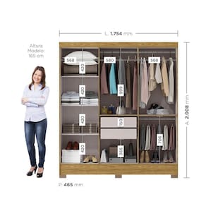 O Guarda Roupa Gliese da Espresso Móveis apresenta designer prático e moderno associado a uma ótima divisão interna distribuídas em suas seis portas de abrir, prateleiras , 3 cabideiros e 2 espaçosas gavetas internas. Acabamento da Prateleira: Pintura Texturizada UV Escala de Brilho da Prateleira: Semi-Brilho Possui Cabideiros: 03 Acabamento da Gaveta: Pintura UV Possui Organizador de Gaveta: Não Acabamento da Porta: Pintura Texturizada UV Escala de Brilho da Porta: Semi-Brilho Material do Puxador da Porta: MDF Altura dos Pés: 5 cm Ambiente Principal: Quarto codigo_ean: 7909903939710 Complexidade da Montagem: Média: pode ser montado por mais de uma pessoa e/ou necessite de maior conhecimento para montagem Cor: Marrocos/Off White Cor do Produto: Marrocos/Off White Cor Interna: Ártico Escala de Brilho: Semi-Brilho Gaveta com Chave: Não Guarda-Roupa Suporta Até (kg): 60 kg Itens Inclusos: 1 Guarda roupa, ferragens e manual Linha ou Coleção: Essencial Manual de Montagem e Instalação: https://product-hub-prd.madeiramadeira.com.br/952765/documents/70be624f-bb8a-4b7b-9bf1-f4c5f1998c252379091539817272678557738.pdf Material da Gaveta: MDP Material da Porta: MDP Material da Prateleira: MDP Material dos Pés: Plástico Material Principal: MDP modular: Não Necessita Montagem: Sim Origem do Produto: Nacional Peso: 85,4 kg Peso Máximo por Gaveta: 3 kg Peso Máximo por Prateleira: 5 kg Possui Calceiros: Não Possui Espaço para Vestidos Longos: Não Possui Espelho: Não Possui Espelho Interno: Não Possui Ganchos: Não Possui iluminação: Não Possui Nichos: Não Possui Painel de TV: Não Possui Pés: 06 Possui Portas: Sim Possui Prateleiras: Sim Possui Sapateira: Não Produto Montado: Sim Quantidade de Gavetas: 02 Gavetas Quantidade de Prateleiras: 04 Prateleiras Recomendações de Uso, Manutenção e Limpeza: Para manter seu móvel novo por muito mais tempo, evite locais úmidos, mantenha-o distante de líquidos e de fontes de calor. Evite a exposição prolongada ao sol. Para limpá-lo com segurança utilize uma flanela seca sem produtos abrasivos e nem lustra móveis. Sistema de Montagem: Parafusos e Cavilhas Suporta Até (kg): 60 kg Tipo de Corrediça da Gaveta: Metálica Simples Tipo de Dobradiça/Corrediça da Porta: Aço Tipo de Gaveta: Interna Tipo de Guarda-Roupa: Casal Tipo de Puxador da Gaveta: Embutido Tipo de Puxador da Porta: Externo