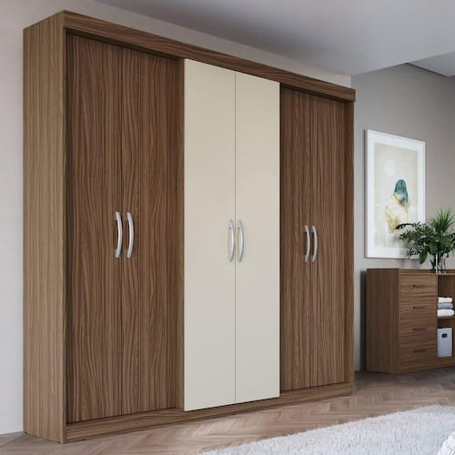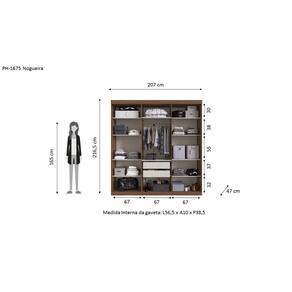 O Guarda-Roupa Grécia 6 portas é uma ótima opção para quem busca um produto que combine com qualquer ambiente e ainda apresente elegância e praticidade. Além disso, este modelo possui um amplo espaço interno, que conta com cabideiro, prateleiras, calceiros e 2 gavetas que possibilitam uma melhor organização. Acabamento da Prateleira: Pintura Texturizada UV Escala de Brilho da Prateleira: Semi-Brilho Possui Cabideiros: Sim Acabamento da Gaveta: Pintura Texturizada UV Escala de Brilho da Gaveta: Semi-Brilho Material do Puxador da Gaveta: MDP Possui Organizador de Gaveta: Não Acabamento da Porta: Pintura Texturizada UV Escala de Brilho da Porta: Semi-Brilho Material do Puxador da Porta: Plástico Altura da Cama: cm Ambiente Principal: Quarto Cama Auxiliar Suporta Até (kg): kg Cama Suporta Até (kg): kg codigo_ean: 7908506285491 Complexidade da Montagem: Média: pode ser montado por mais de uma pessoa e/ou necessite de maior conhecimento para montagem Cor: Nogueira/Off White Cor do Produto: Nogueira/Off White Cor Interna: Lineo Escala de Brilho: Semi-Brilho Informações Complementares: Sem espelho Itens Inclusos: 1 Guarda Roupa, kit de ferragens e manual de montagem Largura da Cama: cm Manual de Montagem e Instalação: https://product-hub-prd.madeiramadeira.com.br/706949/documents/31b89361-bcf5-4f48-a6c5-b3c415d50f5d869905manualph1675.pdf Material da Gaveta: MDP Material da Porta: MDP Material da Prateleira: MDP Material Principal: MDP Necessita Montagem: Sim Origem do Produto: Nacional Peso: 144,95 kg Peso Máximo por Gaveta: 5 kg Peso Máximo por Prateleira: 15 kg Possui Calceiros: 03 Possui Espelho: Não Possui Pés: Não Possui Portas: Sim Possui Prateleiras: Sim Produto Montado: Sim Profundida de Cama: cm Recomendações de Uso, Manutenção e Limpeza: Recomenda-se a utilização de pano seco. Sistema de Montagem: Minifix e parafuso Tipo de Corrediça da Gaveta: Metálica Simples Tipo de Dobradiça/Corrediça da Porta: Metálica Tipo de Gaveta: Interna Tipo de Guarda-Roupa: Casal Tipo de Puxador da Gaveta: Não Possui Tipo de Puxador da Porta: Externo