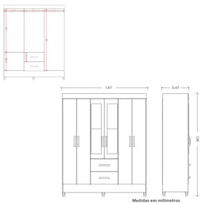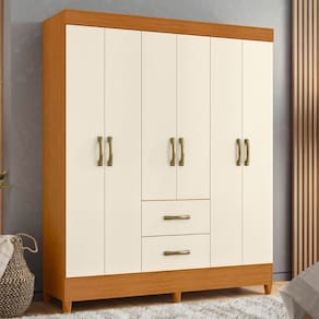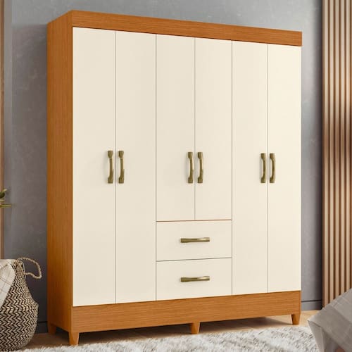 O Guarda Roupa Mobi possui 6 portas e 2 gavetas externas, cabideiros e prateleiras para acomodar as suas roupas, sapatos e objetos pessoais. Esse produto proporciona um melhor aproveitamento de espaço, garantindo charme ao seu quarto.