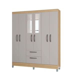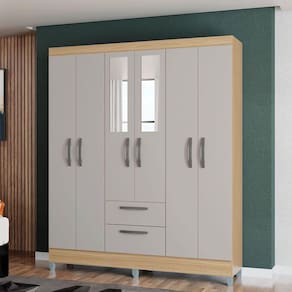 Características: Fabricado em MDP - 12 mm 6 Portas com Dobradiças Metálicas 2 Gavetas com Corrediças Metálicas 2 Espelhos 3 mm 2 Cabideiro de madeira Puxadores de Plástico Pés de Plástico Acabamento em Pintura U.V