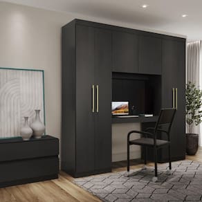 Guarda Roupa Casal 6 Portas 2 Gavetas Porto Preto com Escrivaninha