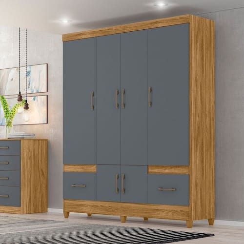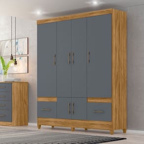 Guarda-Roupa Casal 6 Portas 2 Gavetas Smart Freijó/Cinza - Marrom