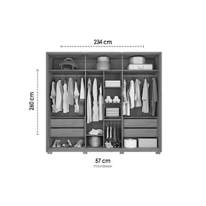 Dimensões(Cm): Comprimento(Profundidade): 57cm x Largura: 268cm x Altura: 234,2cm