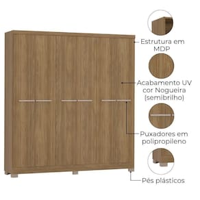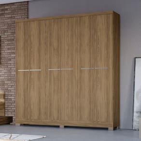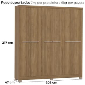 Guarda-roupa Casal E530 para quem busca funcionalidade e design moderno em um só móvel. Estrutura em MDP (12 mm) e acabamento em pintura UV, conta com 6 portas, 3 cabideiros metálicos, 3 prateleiras e 2 gavetas internas com corrediças metálicas. Este produto será entregue em 03 volumes.