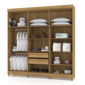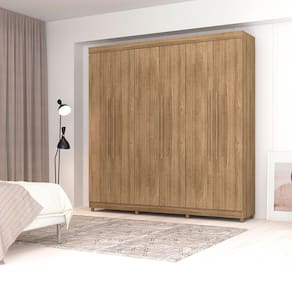 Além de sua capacidade de armazenamento, o Guarda Roupa Elegância possui prateleiras e cabideiros bem distribuídos, garantindo que cada item tenha seu lugar específico. A estrutura robusta e o material de alta qualidade conferem durabilidade ao móvel, tornando-o uma peça indispensável para o seu quarto.