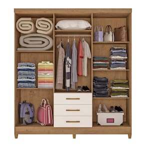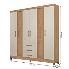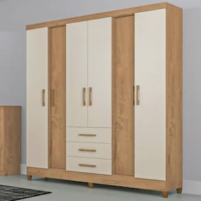 Guarda-roupa Casal 6 Portas 3 Gavetas Atualle Durban O Guarda-Roupa Atualle Durban é desenvolvido com 6 portas com dobradiças metálicas, 3 gavetas que suportam até 4kg, amplo espaço interno dividido com 1 cabideiro para pendurar suas melhores roupas e 6 prateleiras espaçosas que suportam até 10kg, perfeitas para armazenar suas coisas da melhor maneira. Além disso, ele também conta com uma boa qualidade estrutural que é promovida graças a sua fabricação feita com chapas de MDP, material responsável por promover maior firmeza e resistência. Para finalizar o seu acabamento é feito com a técnica de pintura UV fosca, ela aumenta a durabilidade da cor deixando seu móvel ainda mais bonito e fácil de limpar. Cor: Bege