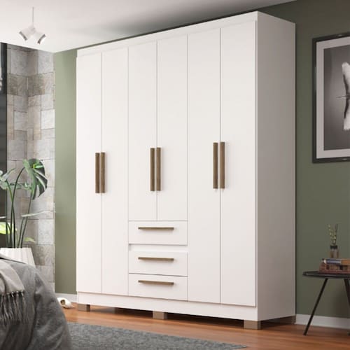 O(a) Guarda-Roupa Casal 6 Portas 3 Gavetas Branco - Decibal é produzido em MDP na escala de brilho Brilho, Fosco e Semi-Brilho, e possui um grau de dificuldade de montagem: Médio.
