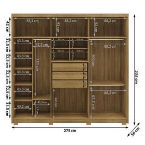 Material: MDF | Cor: Fendi | Cômodo Indicado: Quarto | Dimensões do Produto (A X L X P): 2,30 x 2,75 x 0,56 | Possui Prateleira: Sim | Possui portas: Sim | Quantidade de portas: 6 Portas | Tipo de Porta: Giro | Possui Gavetas: Sim | Quantidade de Gavetas: 3 | Tipo de Corrediça da Gaveta: Telescópica | Possui Espelho: Não | Quantidade de Espelhos: 0 | Possui pés: Sim | Peso do Produto (Kg): 244 | Altura do Produto (cm): 230 | Largura do Produto (cm): 275 | Comprimento do Produto (cm): 56 | Nome do Simples no Fornecedor: Guarda Roupa Dubai Majestic | do Fabricante: 90 dias | Instruções/Cuidados: Evite contato com líquidos. Nada de lavar os móveis. Móveis não gostam de umidade. Não deixe o móvel exposto ao sol. Os acessórios também precisam de limpeza. | Produto precisa de Montagem?: Sim, a montagem é simples mas sugerimos a contratação de algum experiente de sua preferência | Material para Filtro: MDF | Material da Estrutura: MDF | Necessita Fixação na Parede: Não | Conteúdo Embalagem: Guarda Roupa 6 Portas 3 Gavetas Dubai Majestic | Origem: Nacional | Estado de Origem: Paraná | Quantidade de Volumes: 5 | Peso (volume 01): 58 Kg | Comprimento x Largura x Altura (volume 01): 2,77 x 0,55 x 0,07 | Peso (volume 02): 43,5 Kg | Comprimento x Largura x Altura (volume 02): 2,37 x 0,55 x 0,07 | Peso (volume 03): 37 Kg | Comprimento x Largura x Altura (volume 03): 1,78 x 0,46 x 0,08 | Peso (volume 04): 42 Kg | Comprimento x Largura x Altura (volume 04): 1,78 x 0,55 x 0,08 | Peso (volume 05): 63,5 Kg | Comprimento x Largura x Altura (volume 05): 2,22 x 0,45 x 0,10 Cor: Nature/Fendi