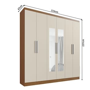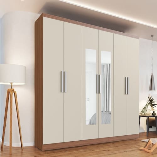 O Guarda-Roupa Mônaco 6 portas é uma ótima opção para quem busca um produto que combine com qualquer ambiente e ainda apresente elegância e praticidade. Além disso, este modelo possui um amplo espaço interno, que conta com cabideiros, calceiros e 3 gavetas.! Acabamento da Prateleira: Pintura Texturizada UV Escala de Brilho da Prateleira: Semi-Brilho Possui Cabideiros: 03 Acabamento da Gaveta: Pintura Texturizada UV Escala de Brilho da Gaveta: Semi-Brilho Possui Organizador de Gaveta: Não Acabamento da Porta: Pintura Texturizada UV Escala de Brilho da Porta: Semi-Brilho Material do Puxador da Porta: MDF Altura do Espelho: 160 cm Ambiente Principal: Quarto codigo_ean: 7900288057808 Complexidade da Montagem: Baixa: pode ser montado por uma pessoa sozinha Cor: Nogueira / Off White Cor da Porta: Branco Cor do Produto: Nogueira / Off White Cor do Puxador: Marrom Cor Interna: Linho Escala de Brilho: Semi-Brilho Espessura da Estrutura (mm): 15 mm Espessura das Portas (mm): 15 mm Espessura das Prateleiras (mm): 15 mm Espessura do Espelho: 3 mm Espessura do Fundo (mm): 3 mm Espessura do Fundo das Gavetas (mm): 1,5 mm Fita Integrada: Sim Formato do Espelho: Retangular Gaveta com Chave: Não Guarda-Roupa Suporta Até (kg): 40 kg Itens Inclusos: 1 Guarda Roupa, 1 Kit de Ferragens e 1 Manual de Montagem Largura do Espelho: 26,5 cm Linha ou Coleção: Édez Manual de Montagem e Instalação: https://product-hub-prd.madeiramadeira.com.br/975599/documents/c7a18391-d6fe-46a7-b59d-b1f5c91888872bbab5d1000807manualph1127.pdf Marca: Edez Material da Gaveta: MDP Material da Porta: MDP Material da Prateleira: MDP Material Principal: MDP modular: Não Necessita Montagem: Sim Nicho com Cabideiro: Sim Origem do Produto: Nacional Peso: 122,265 kg Peso Máximo por Gaveta: 5 kg Peso Máximo por Prateleira: 5 kg Possui Calceiros: Não Possui Capelinha: Não Possui Espaço para Vestidos Longos: Não Possui Espelho: Sim Possui Espelho Interno: Não Possui Ganchos: Não Possui Painel de TV: Não Possui Penteadeira: Não Possui Pés: Não Possui Portas: Sim Possui Prateleiras: Sim Possui Sapateira: Não Quantidade de Cabideiros: 03 Cabideiros Quantidade de Espelho: 02 Espelhos com Tamanhos Iguais Quantidade de Gavetas: 03 Gavetas Quantidade de Portas com Espelhos: 2 Portas com Espelho Quantidade de Prateleiras: 07 Prateleiras Recomendações de Uso, Manutenção e Limpeza: Recomenda-se a utilização de pano seco. Sistema de Montagem: Minifix e parafuso Suporta Até (kg): 40 kg Tipo de Corrediça da Gaveta: Metálica Simples Tipo de Dobradiça/Corrediça da Porta: Metálica Tipo de Fixação do Espelho: Fita Dupla Face Tipo de Gaveta: Interna Tipo de Guarda-Roupa: Casal Tipo de Puxador da Gaveta: Não Possui Tipo de Puxador da Porta: Externo