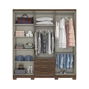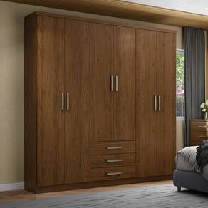 Características: Cabideiro de madeira revestido Gavetas com corrediças metálicas Pés em ABS Puxadores em ABS Estrutura em 12 e 15mm 6 Portas 3 Gavetas Prateleira suporta até 8kg Gaveta suporta até 3kg Calceiro
