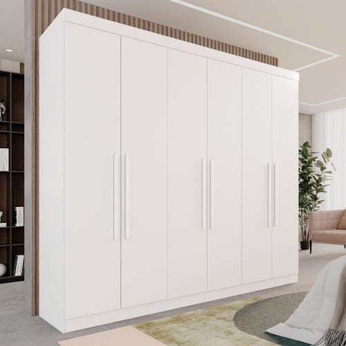 O Guarda-roupa Roma é uma escolha confiável para quem busca durabilidade e funcionalidade. Com sua estrutura sólida em chapa de 15 mm e amplo espaço interno, oferece organização e praticidade. Seu design inteligente, com detalhes como cabideiro em alumínio e corrediças telescópicas, torna-o uma opção com excelente custo-benefício para qualquer ambiente. Acabamento da Prateleira: Pintura UV Escala de Brilho da Prateleira: Semi-Brilho Possui Cabideiros: Sim Acabamento da Gaveta: Pintura UV Escala de Brilho da Gaveta: Semi-Brilho Possui Organizador de Gaveta: Não Acabamento da Porta: Pintura UV Escala de Brilho da Porta: Semi-Brilho Material do Puxador da Porta: MDF Altura dos Pés: 7 cm Altura Máxima dos Pés: 7.0000 Ambiente Principal: Quarto Complexidade da Montagem: Média: pode ser montado por mais de uma pessoa e/ou necessite de maior conhecimento para montagem Cor: Branco Cor do Produto: Branco Escala de Brilho: Fosco Gaveta com Chave: Não Informações Complementares: Todo em Chapa de 15mm. Itens Inclusos: 1 Guarda Roupa, Kit Ferragens e Manual de Montagem Linha ou Coleção: Roma Manual de Montagem e Instalação: https://product-hub-prd.madeiramadeira.com.br/919287/documents/57f022e2-e8fe-4a66-9948-786fae559f4e2095950524617195084479689.pdf Material da Gaveta: MDP Material da Porta: MDP Material da Prateleira: MDP Material dos Pés: PVC Material Principal: MDP modular: Não Montagem Flex: Não Necessita Montagem: Sim Origem do Produto: Nacional Peso: 134,9 kg Peso Máximo por Gaveta: 5 kg Peso Máximo por Prateleira: 10 kg Possui Calceiros: Não Possui Espaço para Vestidos Longos: Sim Possui Espelho: Não Possui Pés: 08 Possui Portas: Sim Possui Prateleiras: Sim Possui Sapateira: Sim Produto Montado: Sim Recomendações de Uso, Manutenção e Limpeza: Limpeza com Pano Seco Sistema de Montagem: Parafuso e Cavilha Suporta Até (kg): 120 kg Tipo de Corrediça da Gaveta: Metálica Telescópica Tipo de Dobradiça/Corrediça da Porta: Metálica Tipo de Gaveta: Interna Tipo de Guarda-Roupa: Casal Tipo de Puxador da Gaveta: Não Possui Tipo de Puxador da Porta: Externo