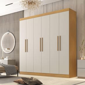 O Guarda-Roupa Belém Valverde Móveis, possui acabamento texturizado, moderno, encontrado apenas nas melhores fábricas de Minas. Este produto possui um contexto de conforto, qualidade e satisfação que atraem até os clientes mais exigentes é um móvel conceitual e imponente, ele impressiona pelo seu acabamento e material, pelos espaços bem distribuídos e os detalhes pensados para atender as mais variadas necessidades do usuário, são eles: puxadores em mdf alongados com design moderno e funcional, portas com dobradiças 35 mm, cabideiros e calceiro metálicos, nichos central para acessórios, sapateiras e espaço para longos, gavetas com corrediças telescópicas, para acomodar os seus pertences e proporcionar a melhor organização do espaço. Acabamento da Prateleira: Pintura Texturizada UV Escala de Brilho da Prateleira: Fosco Possui Cabideiros: 03 Acabamento da Gaveta: Pintura Texturizada UV Possui Organizador de Gaveta: Não Acabamento da Porta: Pintura Texturizada UV Escala de Brilho da Porta: Fosco Material do Puxador da Porta: MDF Ambiente Principal: Quarto Complexidade da Montagem: Alta: deve ser montado por um montador especializado Cor: Cinamomo/Off White Cor do Produto: Cinamomo/Off White Escala de Brilho: Fosco Gaveta com Chave: Não Itens Inclusos: 1 Guarda-Roupa, Manual de Montagem, Kit Ferragens Linha ou Coleção: Belém Manual de Montagem e Instalação: https://cdn2.madeiramadeira.com.br/atributo/valverde/1337942-7899224214125-1.pdf Material da Gaveta: MDP Material da Porta: MDP Material da Prateleira: MDP Material Principal: MDP Necessita Montagem: Sim Origem do Produto: Nacional Peso: 145.6 Peso Máximo por Gaveta: 5 Possui Calceiros: 01 Possui Espelho: Não Possui Pés: Não Possui Portas: 06 Possui Prateleiras: 08 Recomendações de Uso, Manutenção e Limpeza: Limpar com pano úmido. Sistema de Montagem: Parafusos, Cavilhas, Dobradiças e Puxadores. Tipo de Corrediça da Gaveta: Metálica Telescópica Tipo de Dobradiça/Corrediça da Porta: Metálica Tipo de Gaveta: Interna Tipo de Guarda-Roupa: Casal Tipo de Puxador da Gaveta: Não Possui Tipo de Puxador da Porta: Externo