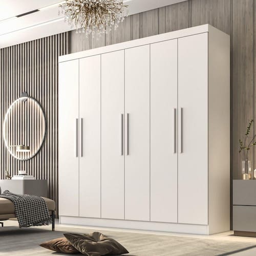 O Guarda-Roupa Belém Valverde Móveis, possui acabamento texturizado, moderno, encontrado apenas nas melhores fábricas de Minas. Este produto possui um contexto de conforto, qualidade e satisfação que atraem até os clientes mais exigentes é um móvel conceitual e imponente, ele impressiona pelo seu acabamento e material, pelos espaços bem distribuídos e os detalhes pensados para atender as mais variadas necessidades do usuário, são eles: puxadores em mdf alongados com design moderno e funcional, portas com dobradiças 35 mm, cabideiros e calceiro metálicos, nichos central para acessórios, sapateiras e espaço para longos, gavetas com corrediças telescópicas, para acomodar os seus pertences e proporcionar a melhor organização do espaço. Acabamento da Prateleira: Pintura Texturizada UV Escala de Brilho da Prateleira: Fosco Possui Cabideiros: 03 Acabamento da Gaveta: Pintura Texturizada UV Possui Organizador de Gaveta: Não Acabamento da Porta: Pintura Texturizada UV Escala de Brilho da Porta: Fosco Material do Puxador da Porta: MDF Ambiente Principal: Quarto Complexidade da Montagem: Alta: deve ser montado por um montador especializado Cor: Branco Neve Cor do Produto: Branco Neve Escala de Brilho: Fosco Gaveta com Chave: Não Itens Inclusos: 1 Guarda Roupa, Kit Ferragens e Manual de Montagem Linha ou Coleção: Belém Manual de Montagem e Instalação: https://cdn2.madeiramadeira.com.br/atributo/valverde/1337942-7899224214125-1.pdf Material da Gaveta: MDP Material da Porta: MDP Material da Prateleira: MDP Material Principal: MDP Necessita Montagem: Sim Origem do Produto: Nacional Peso: 145,6 kg Peso Máximo por Gaveta: 5 kg Possui Calceiros: 01 Possui Espelho: Não Possui Pés: Não Possui Portas: 06 Possui Prateleiras: 08 Recomendações de Uso, Manutenção e Limpeza: Limpar com pano úmido. Sistema de Montagem: Parafusos, Cavilhas, Dobradiças e Puxadores. Tipo de Corrediça da Gaveta: Metálica Telescópica Tipo de Dobradiça/Corrediça da Porta: Metálica Tipo de Gaveta: Interna Tipo de Guarda-Roupa: Casal Tipo de Puxador da Gaveta: Não Possui Tipo de Puxador da Porta: Externo