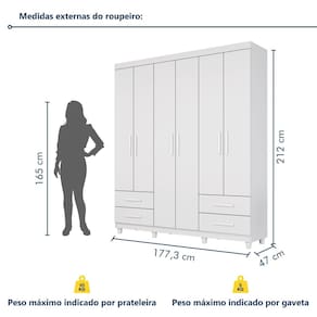 Guarda Roupa Casal 6 Portas 4 Gavetas Califórnia Branco