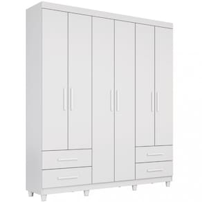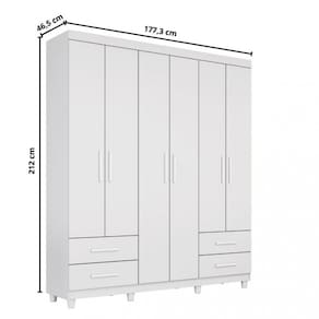 Características: Estrutura em MDP e MDF Acabamento em Pintura UV 6 Portas 4 Gavetas Corrediças telescópicas Cabideiro de madeira Puxador de madeira