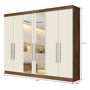 O Roupeiro Alba une comodidade, espaço e beleza em um só produto. Produzido em 100 mdf, possui 6 portas de bater e 4 gavetas com corrediças telescópicas que permitem deslizar suave, abertura total e maior suporte de peso; costas parafusadas que aumenta a resistência do móvel. Este produto conta ainda com pintura verniz uv que da um lindo acabamento e puxadores em alumínio. é ideal para complementar a decoração de seu dormitório. Características Material 100 mdf 6 Portas 4 Gavetas 5 Prateleiras Espelho 2 Cabideiros em Alumínio Corrediças telescópicasDimensões: Altura: 237cm Largura: 245cm Profundidade: 55,8cm Peso 201,70kgRecomendações do fornecedor: Este produto deve ser limpo com pano macio e seco. Não utilize produtos abrasivos como álcool e detergente, assim como esponjas rígidas ou palha de aço. Proteja a superfície do móvel de objetos que transmitam calor ou umidade.Garantia do fornecedor: 3 meses.