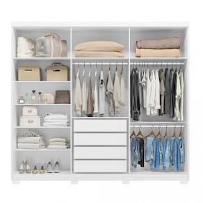 Características: Estrutura em MDF Pintura UV Dobradiças metálicas Corrediças telescópicas Cabideiro metálico Puxadores em MDF 6 Portas 4 Gavetas