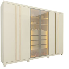 Características: Estrutura em MDF 6 Portas 2 Portas em vidro reflecta Led nas divisórias internas das portas centrais Puxadores em MDF nas portas laterais Puxadores em alumínio nas portas centrais 4 Gavetas Corrediças telescópicas 4 Cabideiros em alumínio 7 Prateleiras organizadoras internas Contém pés