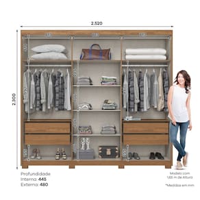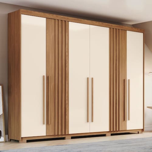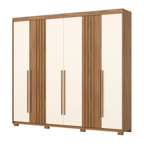Renove o seu quarto com o guarda-roupa de casal Nathaniel com 6 portas e 4 gavetas, perfeito para manter a organização do seu espaço. O Guarda Roupa conta com montagem flex nos detalhes dos apliques ripados nas portas, possui corrediças telescópicas que garantem melhor abertura e suavidade das gavetas, cabideiro e calceiro mais resistentes em alumínio, puxadores em MDF revestido, pés em ABS. Com design elegante e espaços amplos, ele oferece praticidade e funcionalidade para guardar suas roupas e acessórios. Aproveite essa oferta imperdível e tenha um quarto mais bonito e organizado! Acabamento da Prateleira: Pintura Texturizada UV Escala de Brilho da Prateleira: Fosco Possui Cabideiros: Sim Acabamento da Gaveta: Pintura Texturizada UV Escala de Brilho da Gaveta: Fosco Possui Organizador de Gaveta: Não Acabamento da Porta: Pintura UV Escala de Brilho da Porta: Fosco Material do Puxador da Porta: MDF Altura dos Pés: 5 cm Altura Máxima dos Pés: 5.0000 Ambiente Principal: Quarto codigo_ean: 7909903539118 Complexidade da Montagem: Alta: deve ser montado por um montador especializado Cor: Marrom/Off White Cor do Produto: Marrom/Off White Cor do Puxador: Marrom Cor Interna: Trama (Bege Acinzantado) Escala de Brilho: Semi-Brilho Espessura da Estrutura (mm): 12 mm Espessura das Portas (mm): 12 mm Espessura das Prateleiras (mm): 12 mm Espessura do Fundo (mm): 3 mm Espessura do Fundo das Gavetas (mm): 3 mm Gaveta com Chave: Não Itens Inclusos: 1 Guarda Roupa, Kit Ferragens e Manual de Montagem Linha ou Coleção: Nathaniel Manual de Montagem e Instalação: https://product-hub-prd.madeiramadeira.com.br/887440/documents/12bcbe4a-2600-4206-bbed-f7dff3b808dathaniel6portas4gavetasflex.pdf Marca: Espresso Móveis Material da Gaveta: MDF/MDP Material da Porta: MDP Material da Prateleira: MDP Material dos Pés: ABS Material Principal: MDP modular: Não Montagem Flex: Não Necessita Montagem: Sim Origem do Produto: Nacional Peso: 151 kg Peso Máximo por Gaveta: 3 kg Peso Máximo por Prateleira: 8 kg Possui Calceiros: Não Possui Espaço para Vestidos Longos: Sim Possui Espelho: Não Possui Pés: 08 Possui Portas: Sim Possui Prateleiras: Sim Produto Montado: Sim Quantidade de Cabideiros: 02 Cabideiros Quantidade de Gavetas: 04 Gavetas Quantidade de Prateleiras: 10 Prateleiras Recomendações de Uso, Manutenção e Limpeza: Para limpeza de seu móvel, use uma flanela seca ou umedecida. Não utilize produtos químicos que possam danificar o produto. Sapatas Niveladoras: Não Sistema de Montagem: Parafusos e Cavilhas Suporta Até (kg): 44 kg Tipo de Corrediça da Gaveta: Metálica Telescópica Tipo de Dobradiça/Corrediça da Porta: Telescópica Tipo de Gaveta: Interna Tipo de Guarda-Roupa: Casal Tipo de Puxador da Gaveta: Não Possui Tipo de Puxador da Porta: Externo