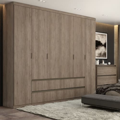 Caracteristicas: 6 Portas 4 Gavetas Corredicas telescopicas Prateleiras Puxadores em aluminio Cabideiro em aluminio/metalico Estrutura MDP e MDF