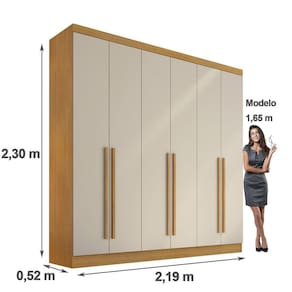 O Guarda-Roupa Uberaba 100% MDF Valverde Móveis, possui acabamento texturizado, moderno, encontrado apenas nas melhores fábricas de Minas. Este produto possui um contexto de conforto, qualidade e satisfação que atraem até os clientes mais exigentes é um móvel conceitual e imponente, ele impressiona pelo seu acabamento e material, pelos espaços bem distribuídos e os detalhes pensados para atender as mais variadas necessidades do usuário, são eles: puxadores em mdf alongados com design moderno e funcional, portas com dobradiças 35 mm, cabideiros e calceiro metálicos, nichos central para acessórios, sapateiras e espaço para longos, gavetas com corrediças telescópicas, para acomodar os seus pertences e proporcionar a melhor organização do espaço. Acabamento da Prateleira: Pintura Texturizada UV Escala de Brilho da Prateleira: Fosco Possui Cabideiros: 04 Acabamento da Gaveta: Pintura Texturizada UV Possui Organizador de Gaveta: Não Acabamento da Porta: Pintura Texturizada UV Escala de Brilho da Porta: Fosco Ambiente Principal: Quarto Complexidade da Montagem: Alta: deve ser montado por um montador especializado Cor: Cinamomo/Off White Cor do Produto: Cinamomo/Off White Cor Flex: Off-White Escala de Brilho: Fosco Gaveta com Chave: Não Itens Inclusos: 1 Guarda-Roupa, Manual de Montagem, Kit Ferragens Linha ou Coleção: Uberaba Manual de Montagem e Instalação: https://cdn2.madeiramadeira.com.br/atributo/valverde/1336637-7899224223202-1.pdf Material da Gaveta: MDF Material da Porta: MDF Material da Prateleira: MDF Material Principal: MDF Necessita Montagem: Sim Origem do Produto: Nacional Peso: 187.5 Peso Máximo por Gaveta: 5 Peso Máximo por Prateleira: 3 Possui Calceiros: Não Possui Espelho: Não Possui Pés: Não Possui Portas: 06 Possui Prateleiras: 07 Recomendações de Uso, Manutenção e Limpeza: Limpar com flanela ou pano macio seco. Não utilizar produtos abrasivos. Não expor o produto diretamente à luz solar e à umidade. Sistema de Montagem: Parafusos, Cavilhas, Dobradiças e Puxadores. Tipo de Corrediça da Gaveta: Metálica Telescópica Tipo de Dobradiça/Corrediça da Porta: Metálica Tipo de Gaveta: Interna Tipo de Guarda-Roupa: Casal Tipo de Puxador da Gaveta: Não Possui Tipo de Puxador da Porta: Externo