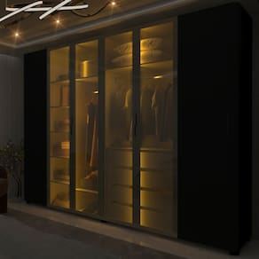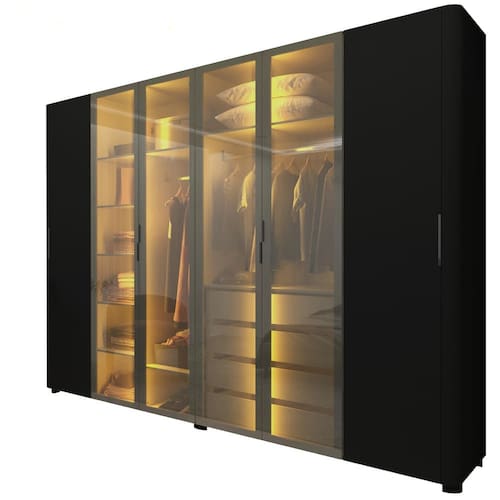 O Roupeiro Innova é um móvel moderno e elegante. Possui 04 portas em vidro Reflecta, cantos curvos e luz LED em cor quente que se destacam em seu visual e trazem um tom de aconchego a decoração. Seu interior pensado para facilitar a organização, possui gavetas espaçosas com corrediças telescópicas, ampla quantidade de prateleiras e tubos cabideiros. Este é o roupeiro perfeito para transformar seu quarto.