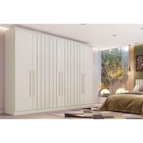 Guarda Roupa Casal 6 Portas (4 Ripadas) e 4 Gavetas Oxford Off White - Europa